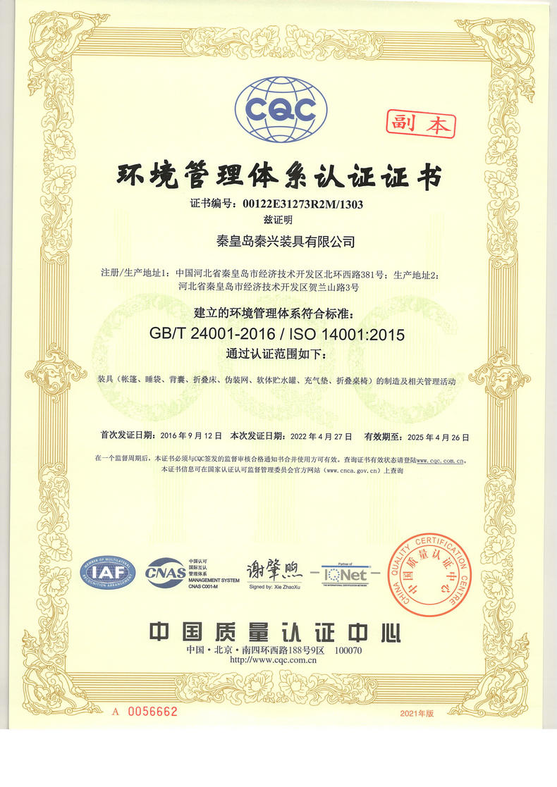 秦皇島秦興裝具有限公司有限公司源于我國第3524工廠,創(chuàng)建于2005年,占地面積30畝,是一家致力于研究,發(fā)展,制造和銷售為一體的綜合性裝具及紡織服裝加工生產(chǎn)企業(yè),我們的主要產(chǎn)品有單、棉帳篷,民用帳篷,旅游帳篷集各種機(jī)工產(chǎn)品等。